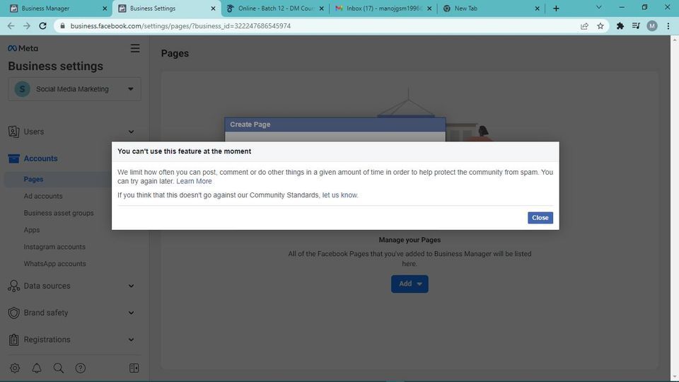 I am trying to create a new page on my Facebook business Manager and I am facing this kind of problem can't be able to create a new page.